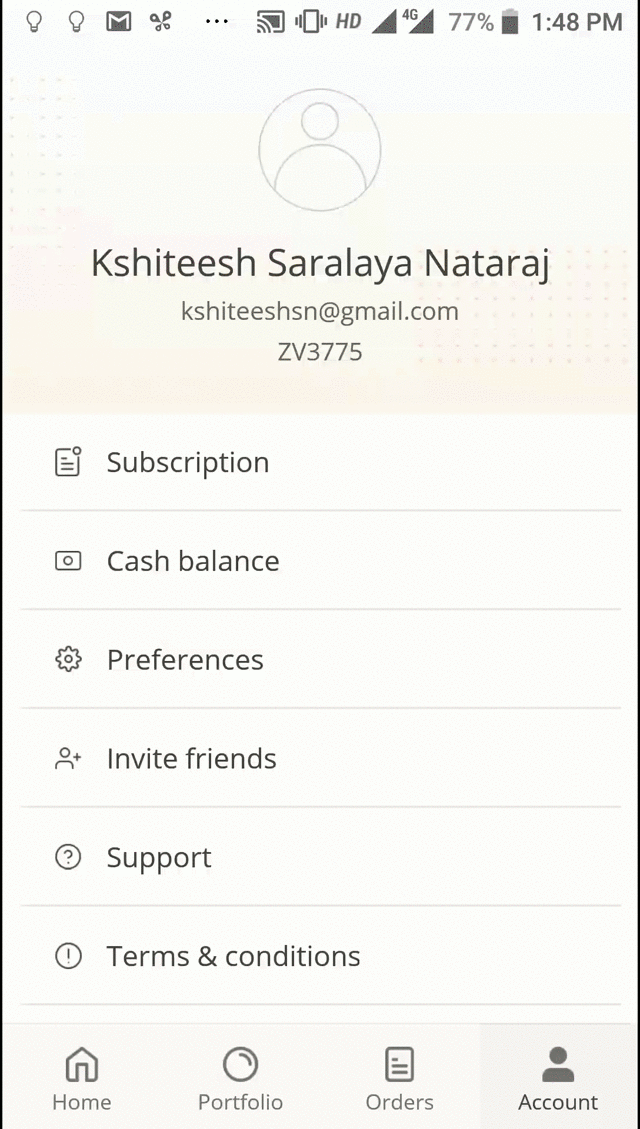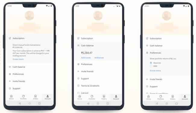 Finally, you can access your account and change any specific settings such as returns preference (in absolute or XIRR format), transfer funds using different methods, check cash balance, etc using the ‘Account‘ tab from the bottom part of the screen.