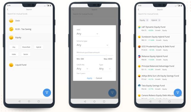 You may choose to apply one or more such filters and based on what values you select, corresponding mutual fund options will be shown to you.