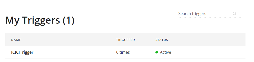 8. Once you click on to create by adding relevant values in the Add Trigger form, your trigger will be saved in the ‘My Triggers‘ list as shown below. You can have the option to edit, pause or delete the trigger from this list.