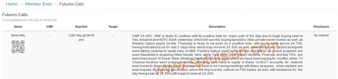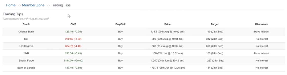 You can avail the intraday tips service, however, it is a paid one. You are supposed to pay a monthly fee of ₹2500 in order to avail this service.