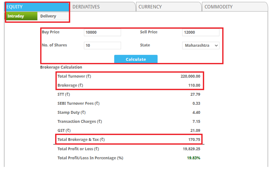 This often makes it difficult for beginners to evaluate the exact trading cost. To help you with this, here is the brokerage calculator that allows you to know the total brokerage as well as the P/L percentage.