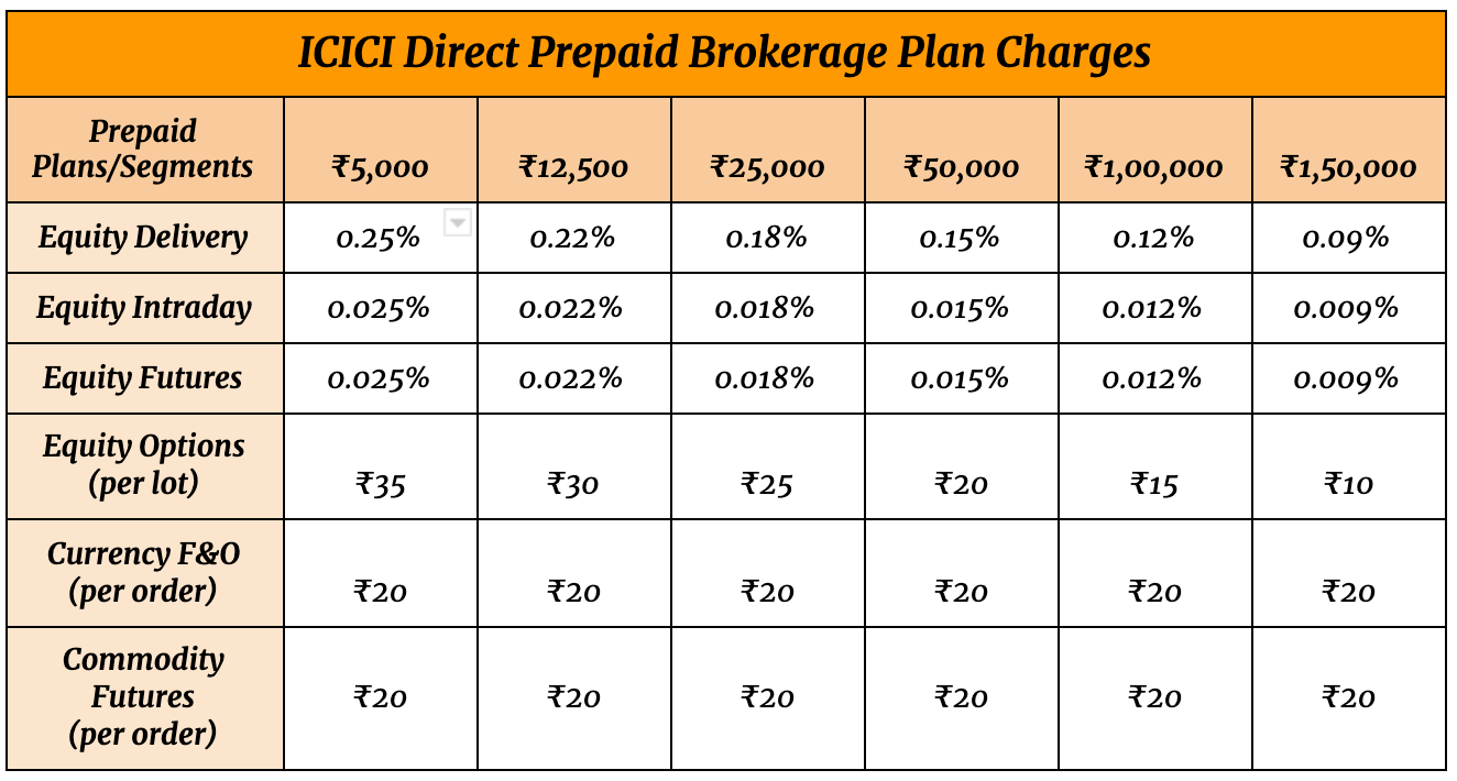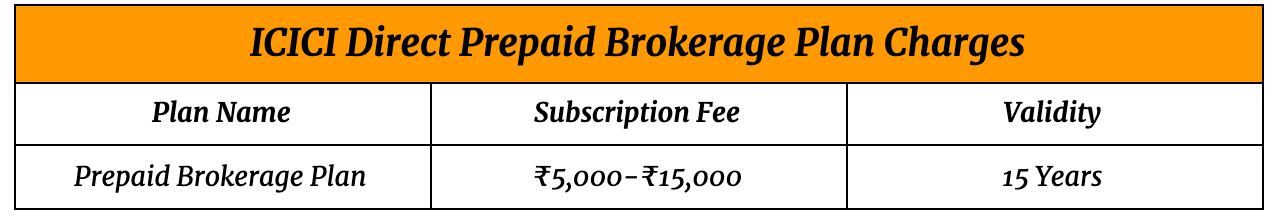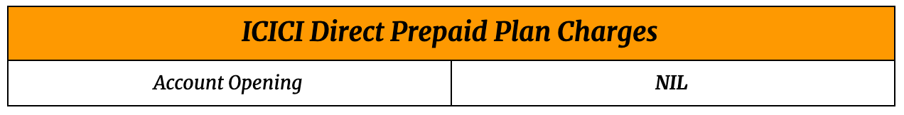 If so, then without wasting a minute, let’s check the following table that discusses the ICICI Direct account opening charges for prepaid brokerage plan.