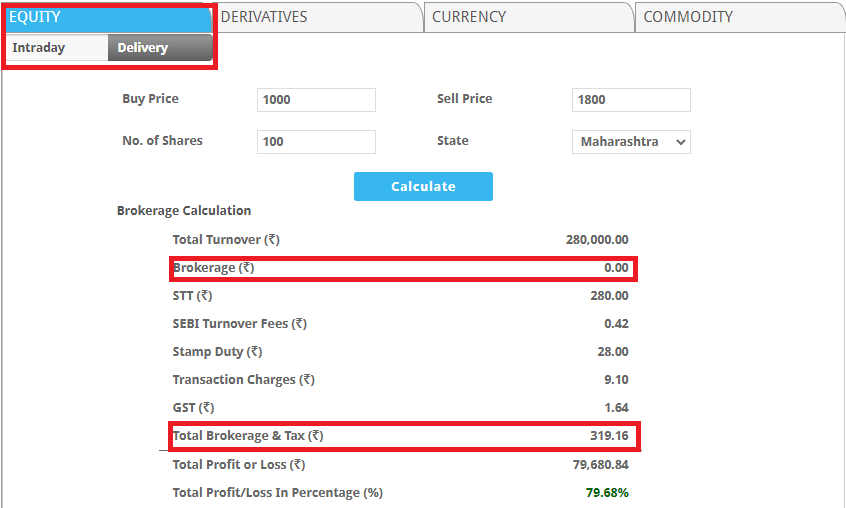 Although there are taxes and other associated fees, still you are relaxed from paying the heavy brokerage fees to trade in the equity delivery segment.