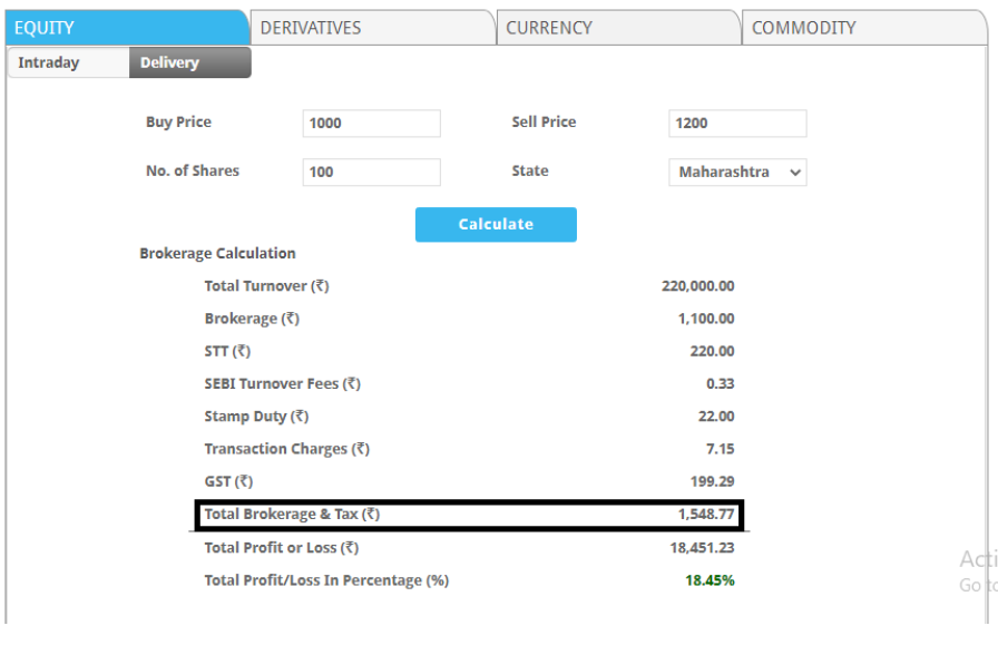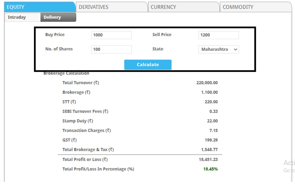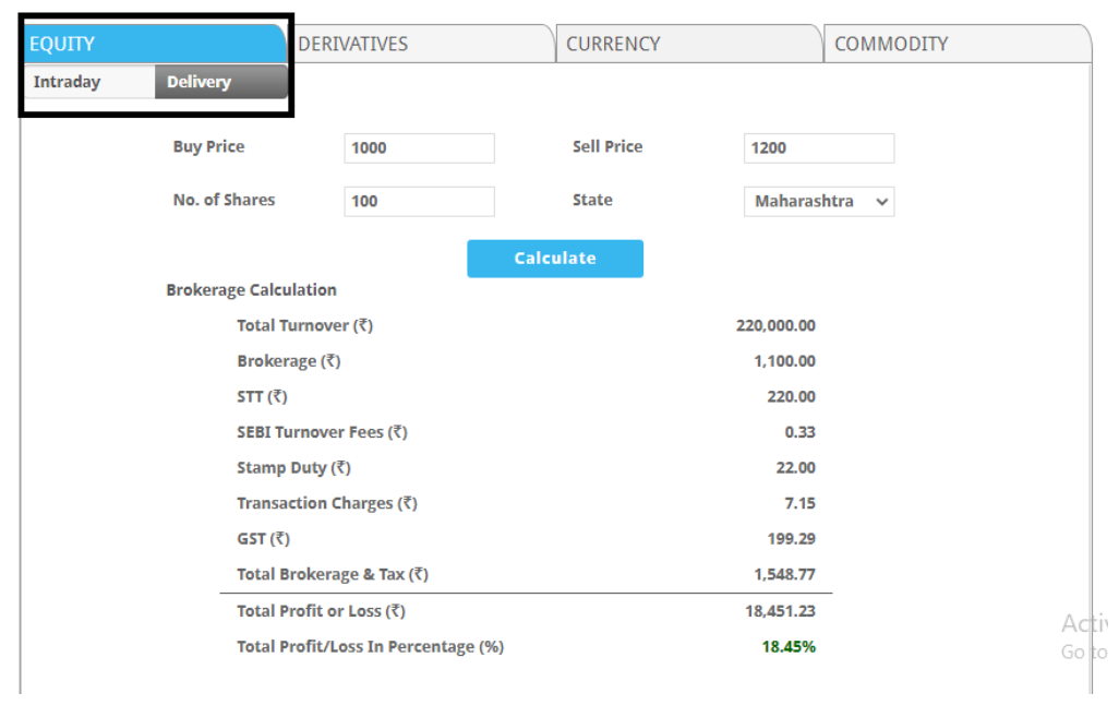 1. Daya opened the calculator and selected the equity segment. Under the segment, he chose ‘Delivery’.