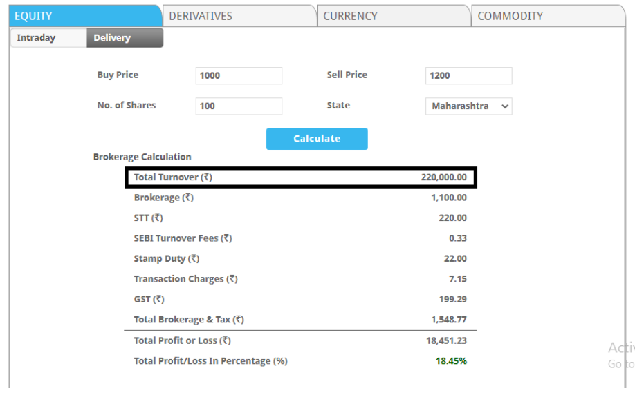 4. After clicking ‘Calculate,’ he got the following numbers. The calculator represented the ‘Total Turnover’ as ₹220,000.