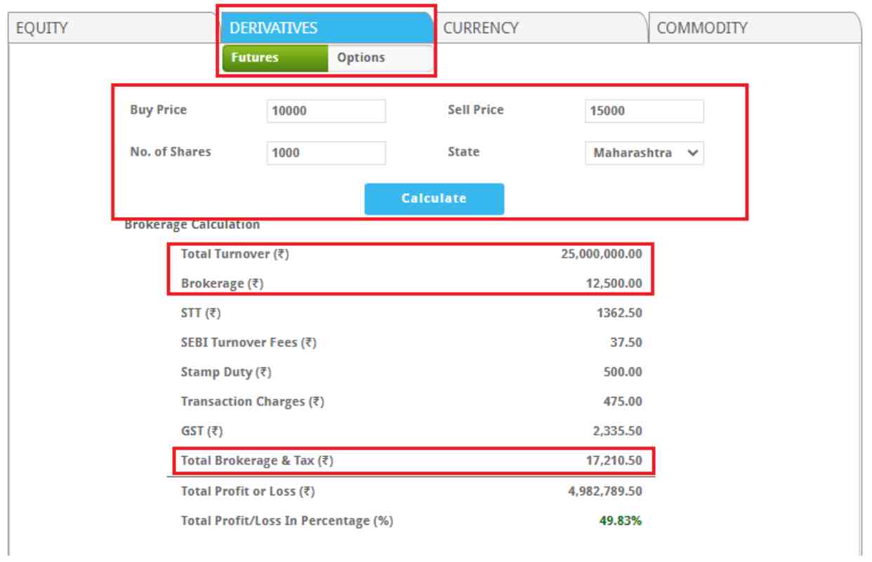 Not only the brokerage, the calculator evaluates the overall profit or loss percentage you incurred in a particular trade.