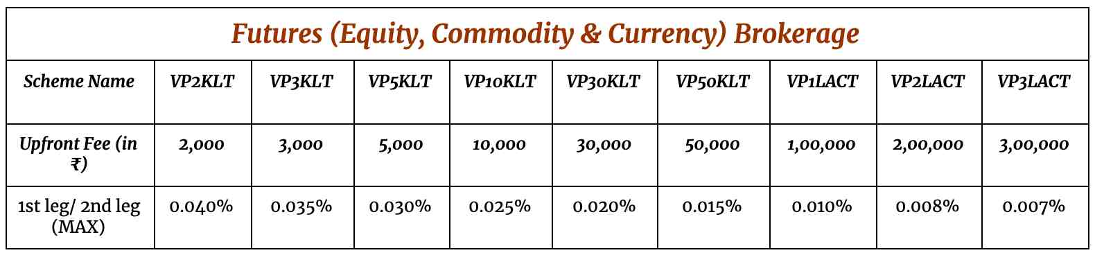 *Apart from the maximum limit, the minimum brokerage is futures is 1 paise in Value Pack.
