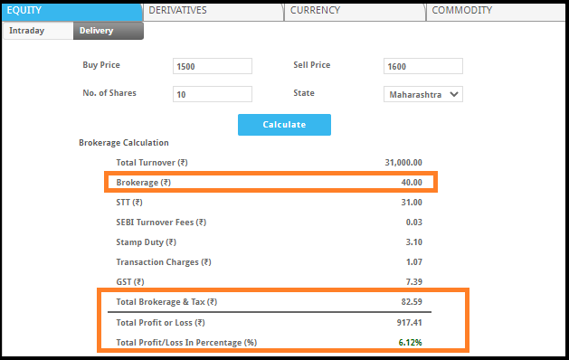 As shown in the table above, along with the brokerage, there are other taxes that need to be paid at the end of the trade. Now, these charges are difficult to calculate manually, and hence here is the easier way for you.