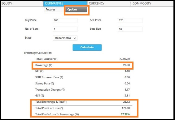 You can easily trade index options and equity option contracts available for trading. However, the brokerage charges are flat ₹20 per trade, but this is not the only fee you need to pay for the trade.