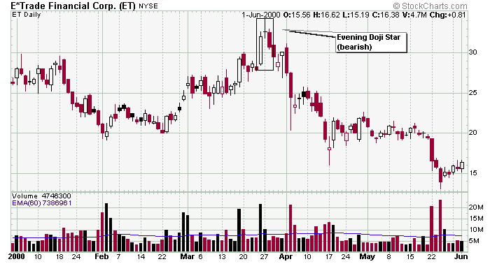 This is the pattern which suggests that a trade should be initiated in the opposite direction of the existing trend. In case of a Doji Star Bearish Candlestick Pattern, one should initiate a trade on the short side.