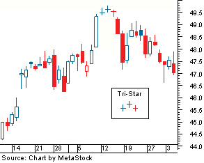 Tristar formations are those patterns where three Doji are formed on three consecutive trading days.