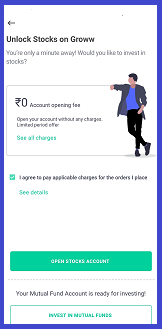 - Since account opening is zero in Groww, you may proceed by clicking on “open stocks account”