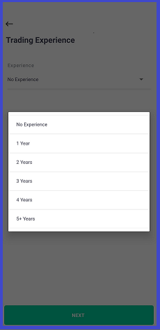 - If you have any prior experience in trading you may mention in the tab and proceed to next.