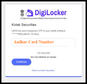 - Link your DigiLocker account with the stockbroker with the OTP you receive on your mobile number. This helps the broker fetch your Aadhar card details.