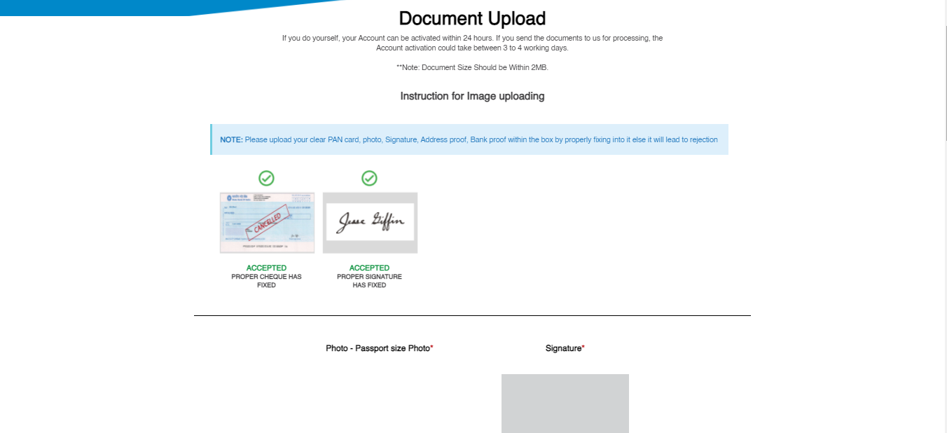 Step9: Next is to get a passport size photo, signature, income proof, bank proof details.
