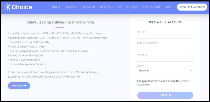 Choice broking demat account opening process is a simple and convenient one. You can open your account free of cost and then reap the benefits of low brokerage and also great trading platforms.