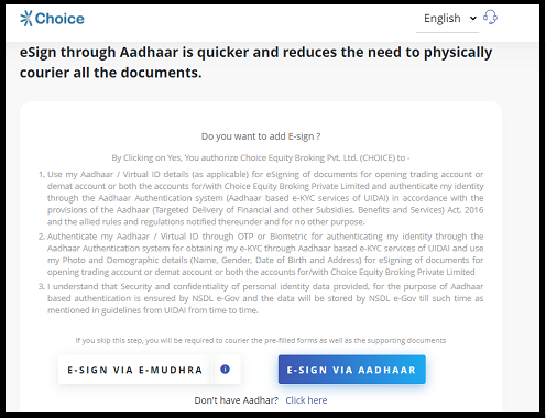 - Click on proceed and then you will see an option of e-sign. You can do this either via aadhar or e-mudra in the case if your aadhar card is not linked to your mobile number.