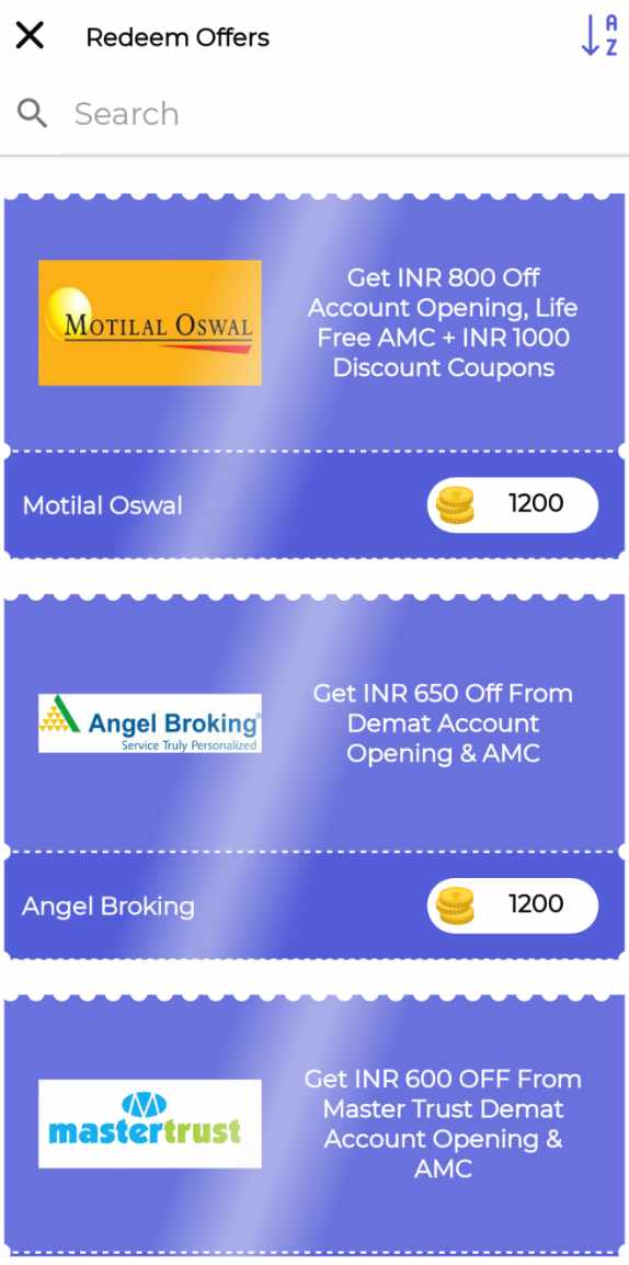 For example – 1200 coins can make you win an offer by Motilal Oswal which will give you an off of Rs. 800 on account opening charges with them. In addition to this, you will not be required to pay any annual maintenance charges for the whole life along with Rs. 1000 worth discount coupons.