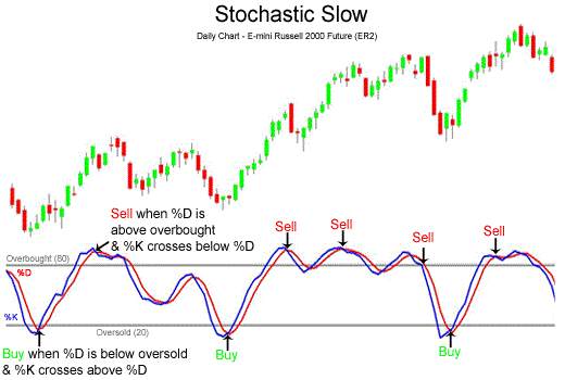Stochastic Oscillator does not follow price or volume, instead, it follows the momentum, which serves as a useful indicator as the momentum changes direction before price does.