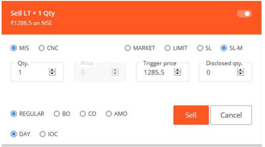 If one wants to place an SL – M order after holding this 1 share, and one wants to limit his loss to only ₹1, one can do it by placing an SL – M order at a trigger price of ₹1285.5.