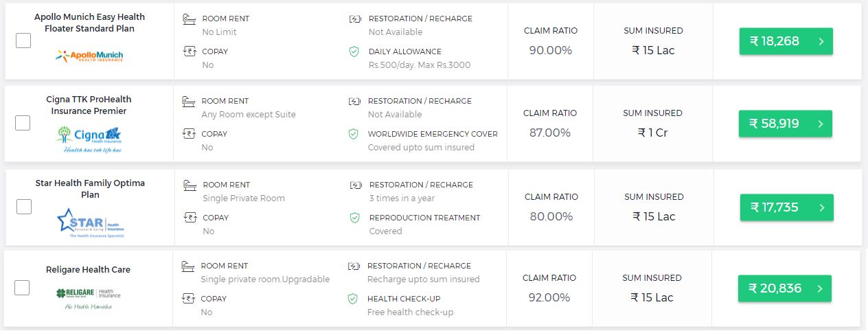 From here, you may choose to go ahead with any of the Insurance plans as per your preference.