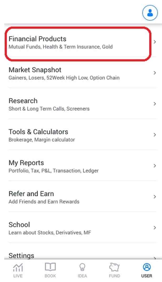 3. Tapping on the tab will prompt a new window. Here, click on the “Financial Products” option.