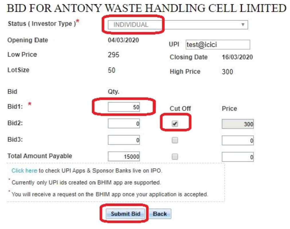 5. A new screen will appear, where you can find new IPOs (if any). Simply choose the IPO, enter the bid price, quantity, etc., and choose the payment method – UPI or Bank.