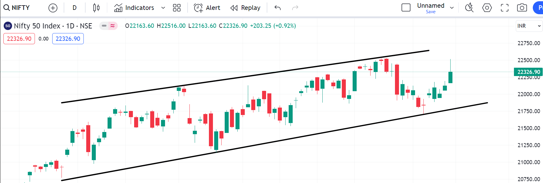 Once you make a decision of index or stock, the next step is to determine the market trend. For these the simplistic approach is to draw a trendline in the daily time frame.