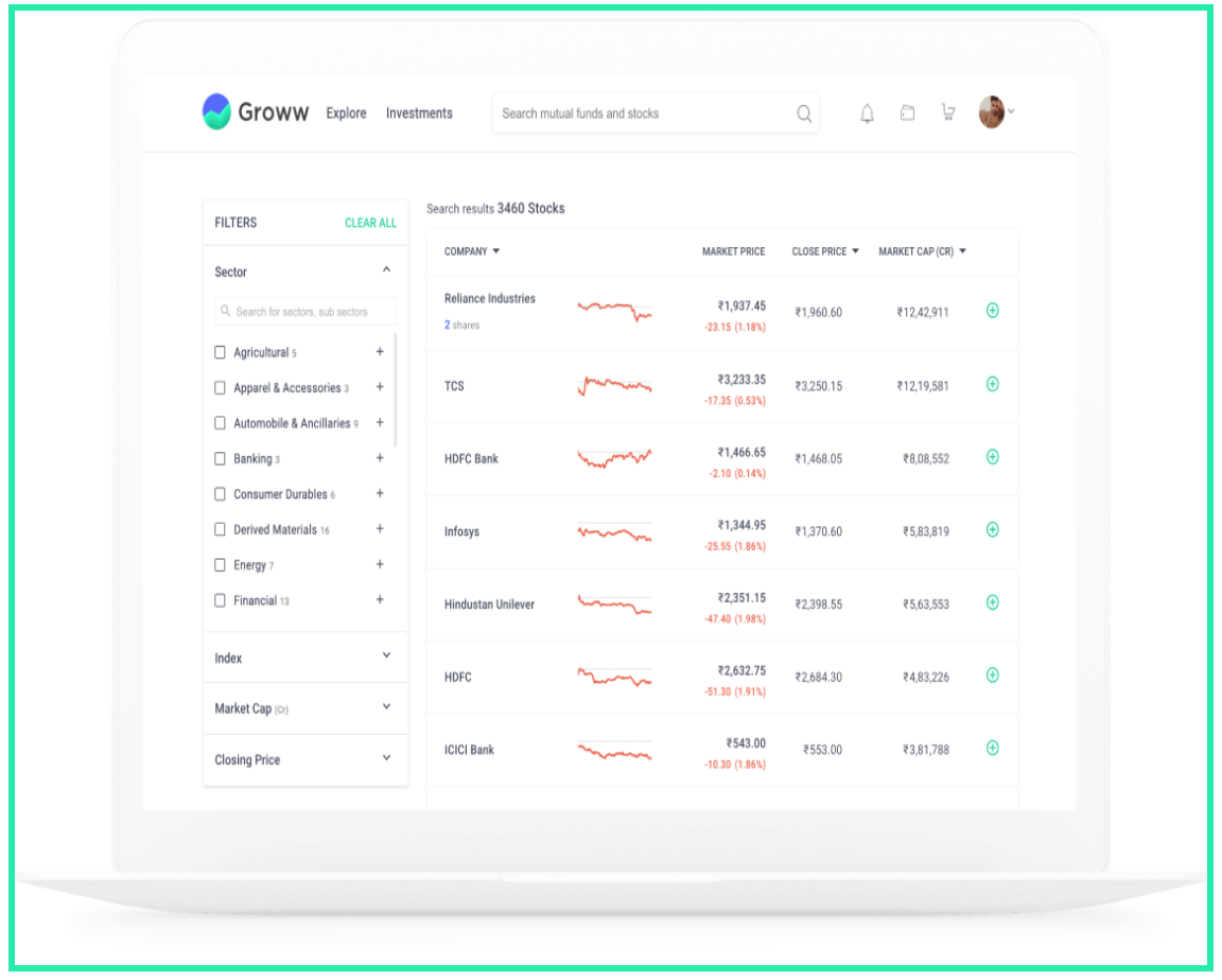 First of all, Groww has a clean interface having “One-click order placement” facilitating quicker trade transactions to avoid the hustle and miss the profit-making opportunity.