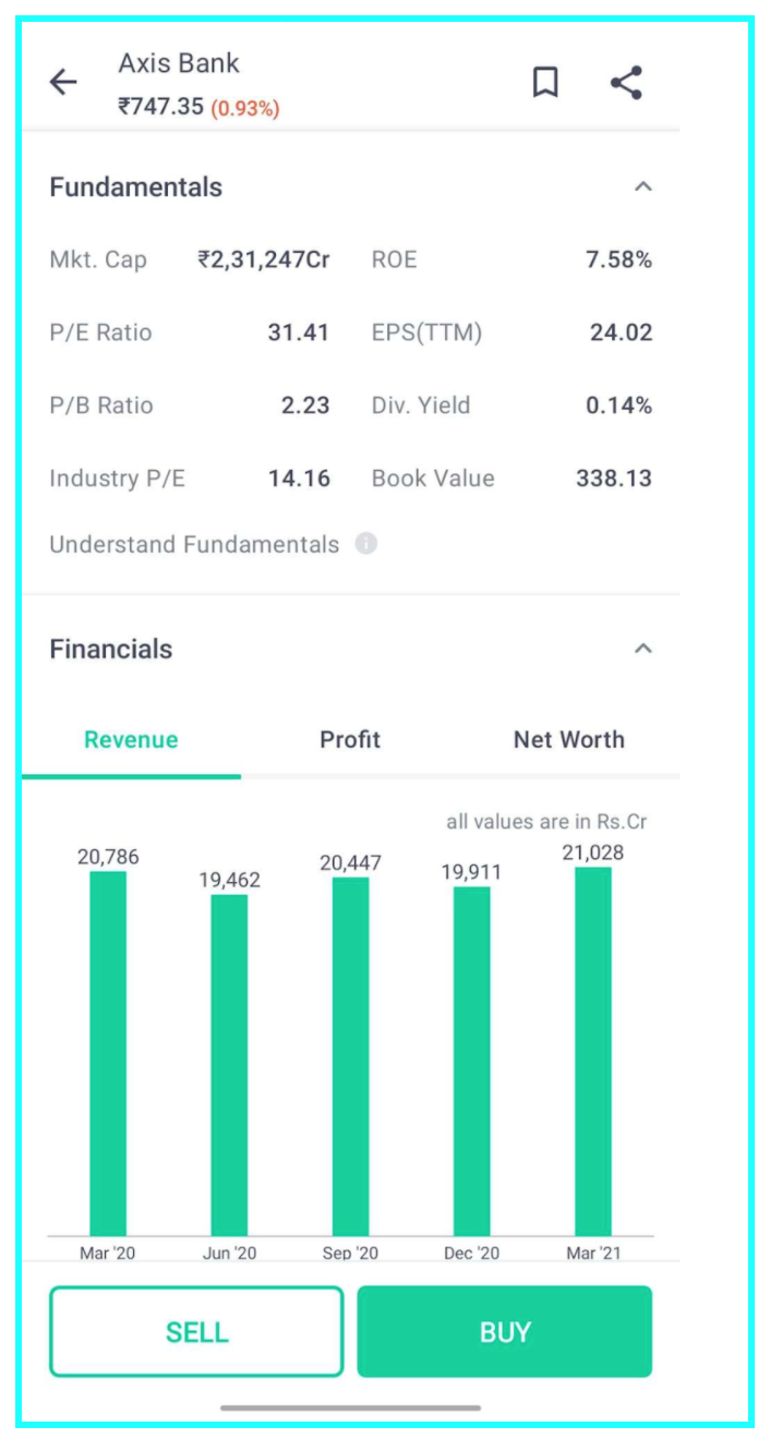 - After selecting the stock at the bottom of the page you’ll find a buy and sell option, you can click on buy and your order details page will open.