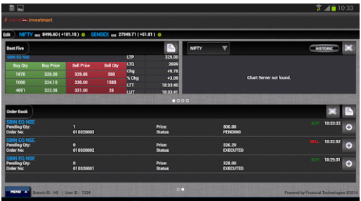 The application can be used to trade in equities, derivatives, currency and commodities. It has intraday charts, and customizable market watch and quotes. The app can be used for viewing the order book, utilized margin, net positions and holdings, and the entire portfolio.