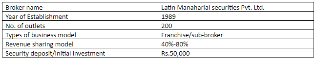The main broker that is Latin Manharlal will keep the revenue in the range of 20%-60%. Suppose, as a franchise, you generate ₹1,00,000 revenue in a month then, you will get a minimum of ₹40,000 as your share and the main broker will get a minimum of ₹20,000 as its share in a month.