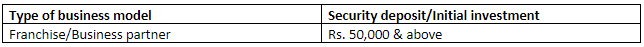 The revenue sharing ratio under this model is comfortable and in line with the industry (more on this later). You will be required to deposit some security money to the company. This model offers you a great opportunity to become a successful entrepreneur.
