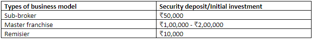 For both, the sub-broker and master franchise model you need to invest Rs.2 lakhs-3 lakhs amount for the set-up of office and required infrastructure.