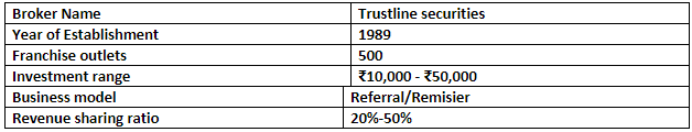 If you want to become a partner with the Trustline securities, you will have to go with Referral model of the broker. Under this model, word-of-mouth plays an important role in making the client base strong for the company.