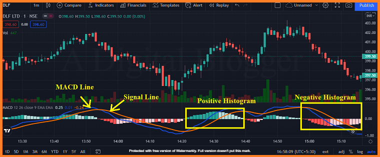 Also, there is the histogram. Now, what is the role of histogram in MACD indicator, and how does it help the trader in doing technical analysis of a stock for intraday trading?