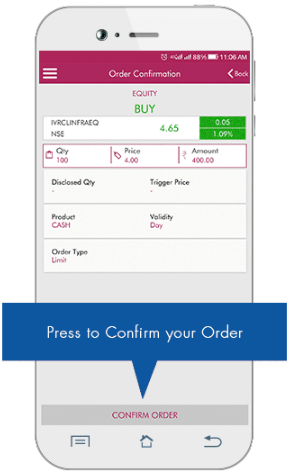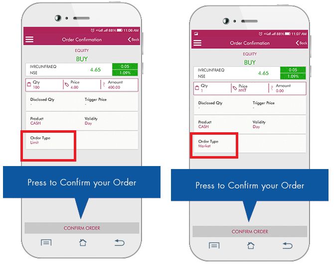 - You are allowed to choose the preferred order type from various options such as Market Order, Limit Order, Stop Loss Order etc. Axis Direct App will ask you to confirm the order and order type before it executes.