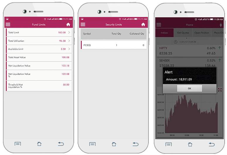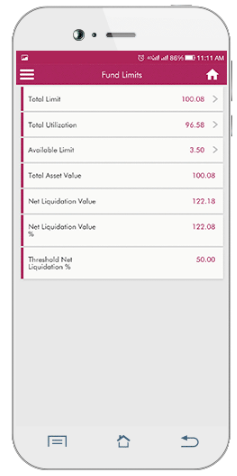 - Then there are features that help you to see Fund Limits, Bank Balance and Security Limits. All these information pieces can be seen individually with the help of a single tap on the menu and the corresponding screens will be displayed.