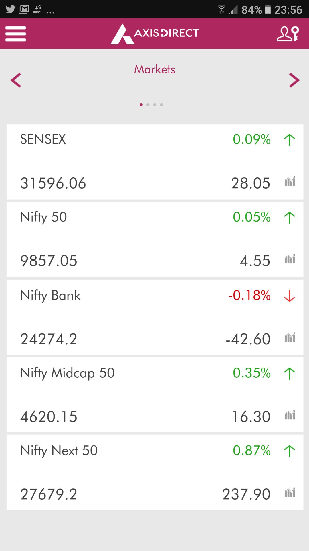 - On similar lines, you can access and view data across commodity and currency segments with the corresponding movements in this Axis Direct App.