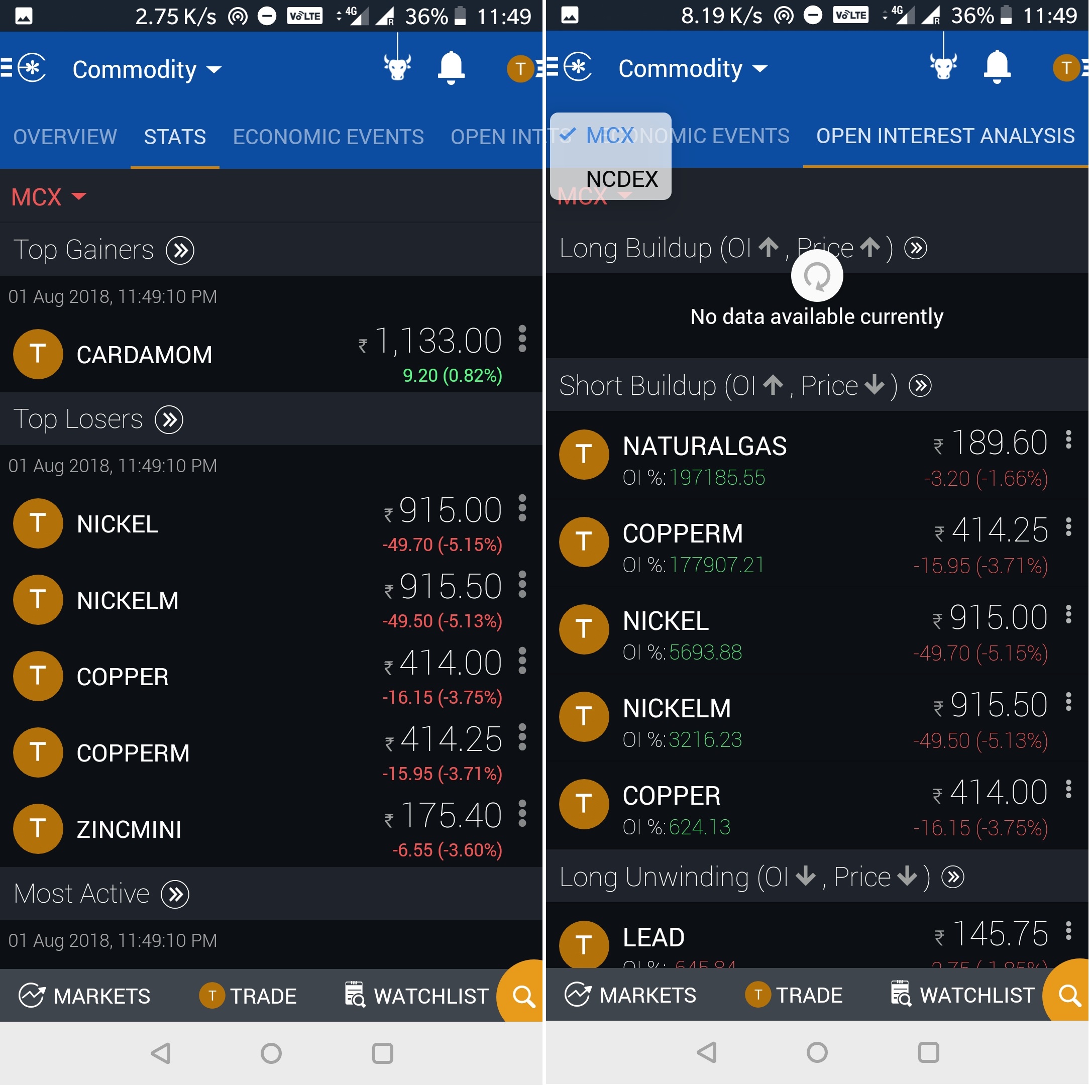 - Finally, if you are someone who prefers commodity trading, then there is a specific module for you in this Edelweiss Mobile App. The screen provides you with information on top commodities in the market with details on their current momentum. Some of the top market (domestic & global) news are also mentioned along for you to analyse their impact on the commodities you are interested in.