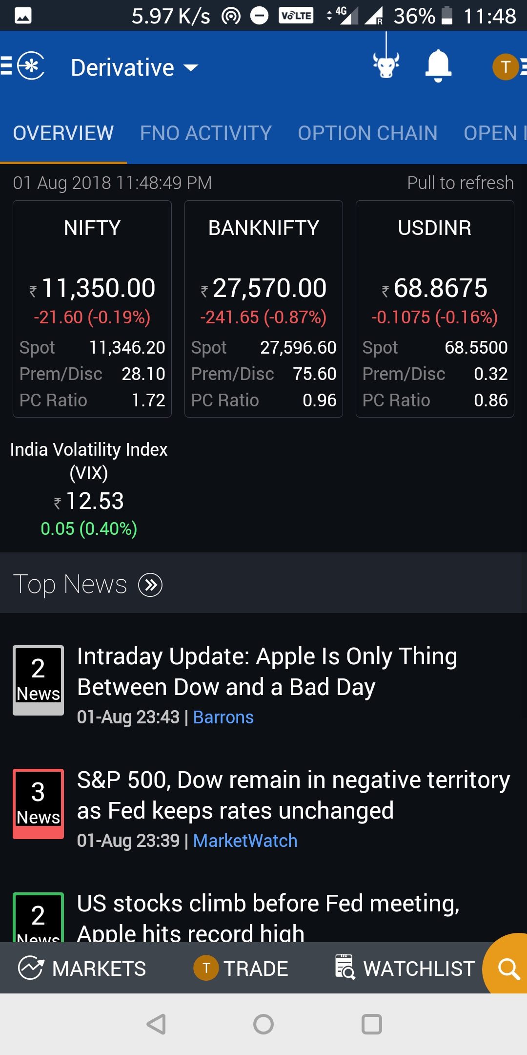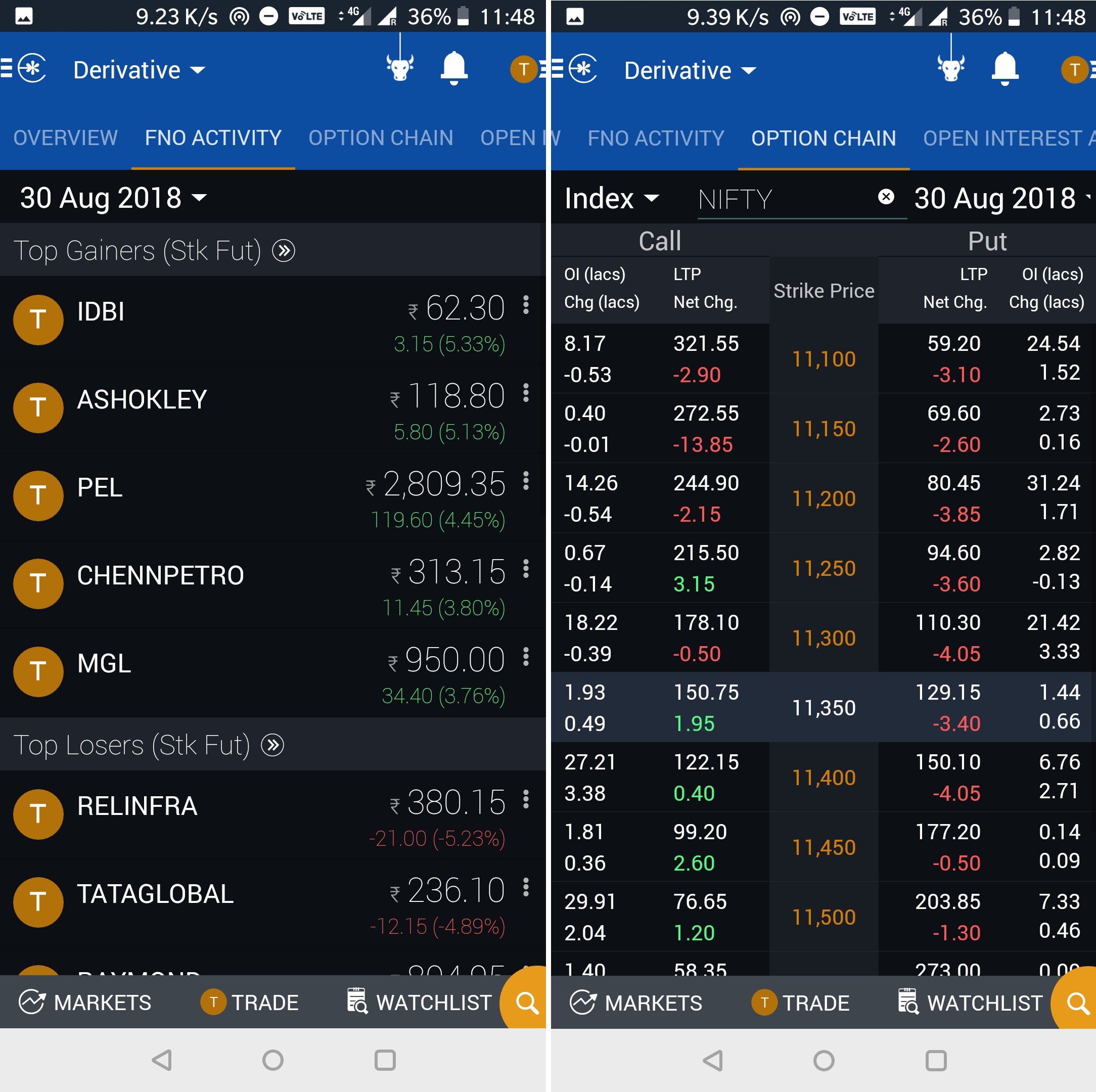 - The below-displayed tabs provide information on derivatives market activity for different periods, option chain, open interest levels and so on. There is no doubt that you must not be trading in derivatives without looking at the below displayed vital pieces of information (assuming you understand what they imply).