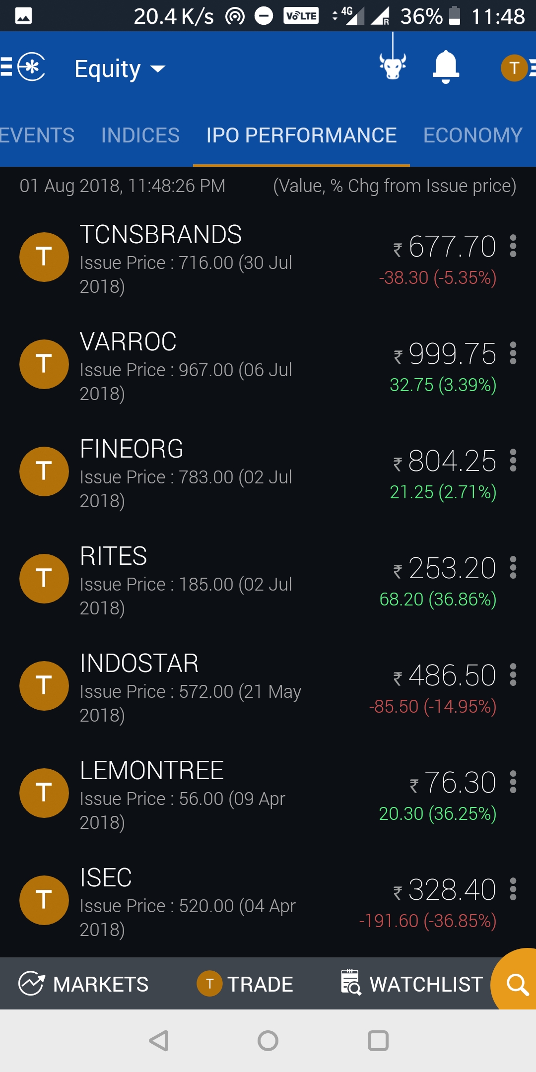 - Then if you are looking for IPO information in regards to the latest launched IPOs in the stock market, then the below-displayed tab ‘IPO Performance’ will give you a quick read around it.