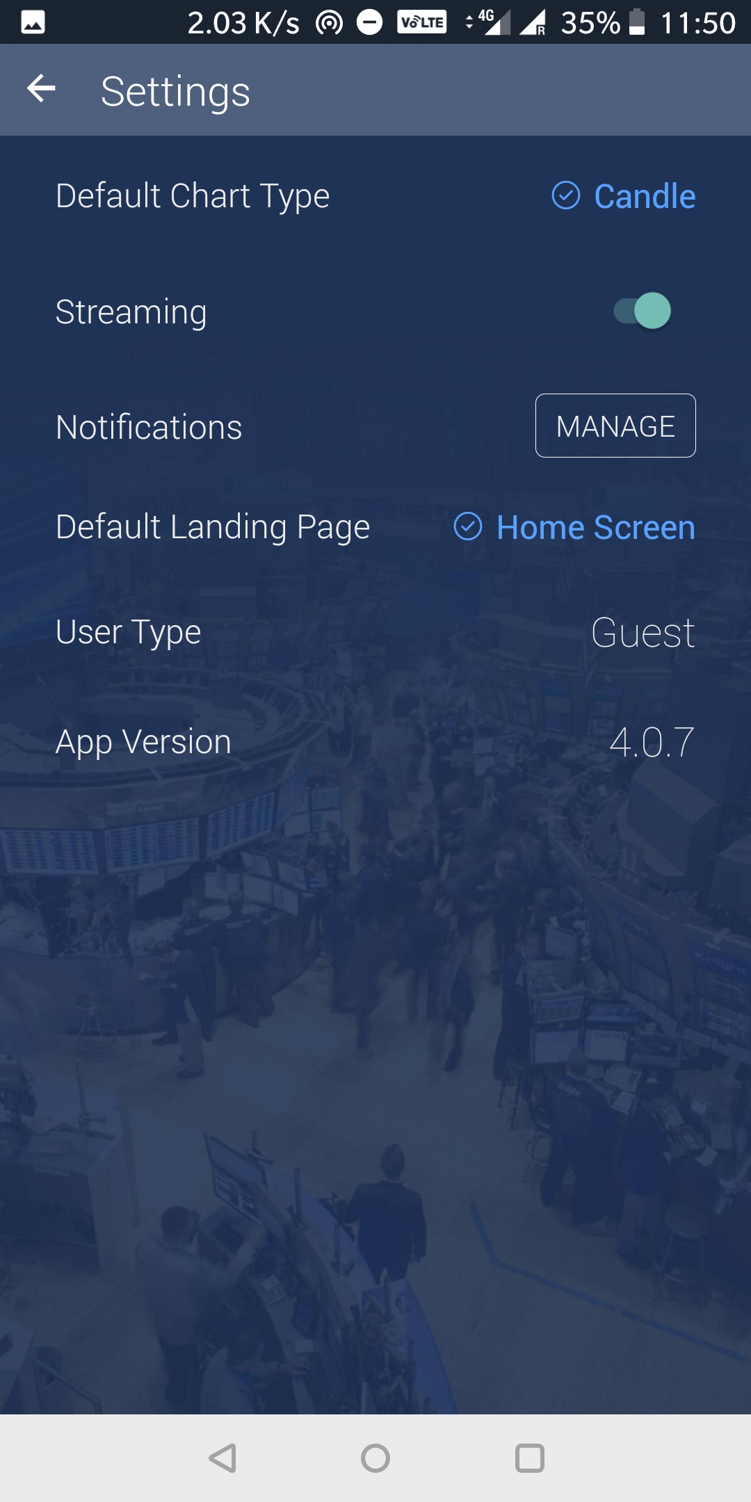 - Finally, you can change the settings in the app as per your preference such as the default chart type you want to use, live market streaming, in-app notifications etc.