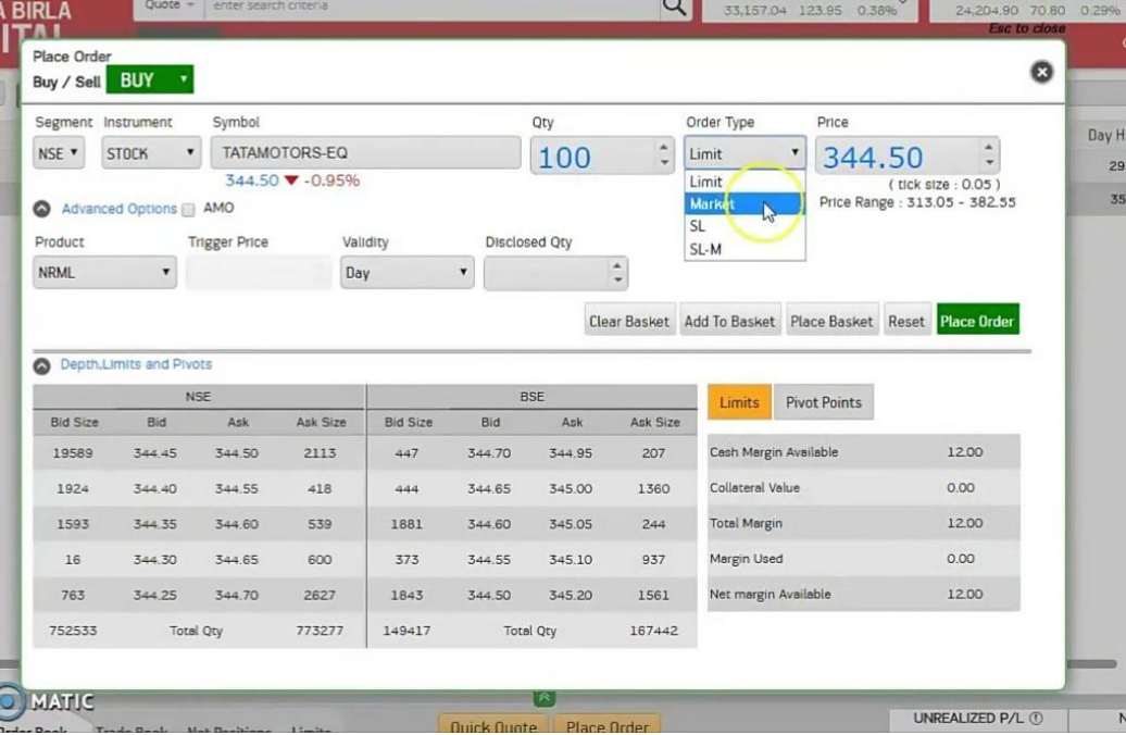 For example, if the current market price of a share is 300 rupees, and you want to buy it at 298rupees, then choose the limit type and set the price at 298 rupees. The app will automatically buy that stock when the price reaches your set price.