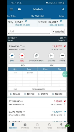 - In the watchlist, you could add the stocks in which you feel interested in doing the trading.