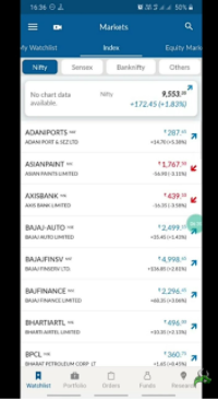 Market means ‘My Watchlist,’ and it shows the NIFTY and SENSEX ratio. So, when you ask the question- How to use Angel Broking app, it begins with the Market.