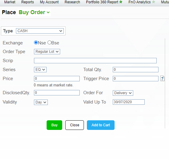 This helps you to place the order even after the share market closes. Just fill all the details and click on the submit button to place an order.