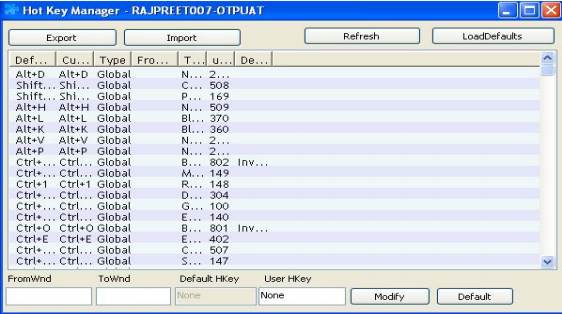 - The setting of shortcut keys or hotkeys is done through the “Shortcut Manager” as shown below: