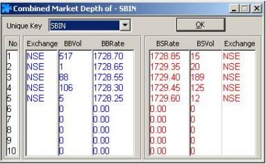 - With “Combined Market Depth” feature, the user can see the top 10 bid and ask along with the quantity and price of the stocks.