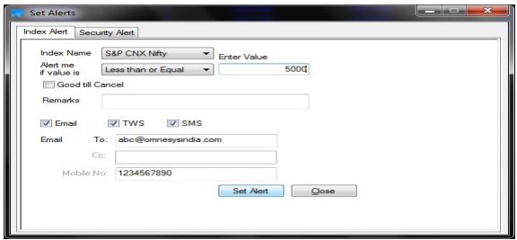 - Finally, if you are looking to set a few alerts based on specific conditions, then the ‘Set Alerts’ feature allows you to create such alerts for you. The notification can be in the form of email, SMS or within the trading platform itself.